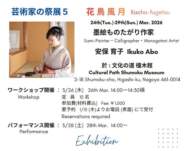 この度『芸術家の祭展』第5弾を、弊社が指定管理者である「文化のみち橦木館」にて、墨絵ものがたり作家の安保育子様をお迎えして開催する運びとなりました。